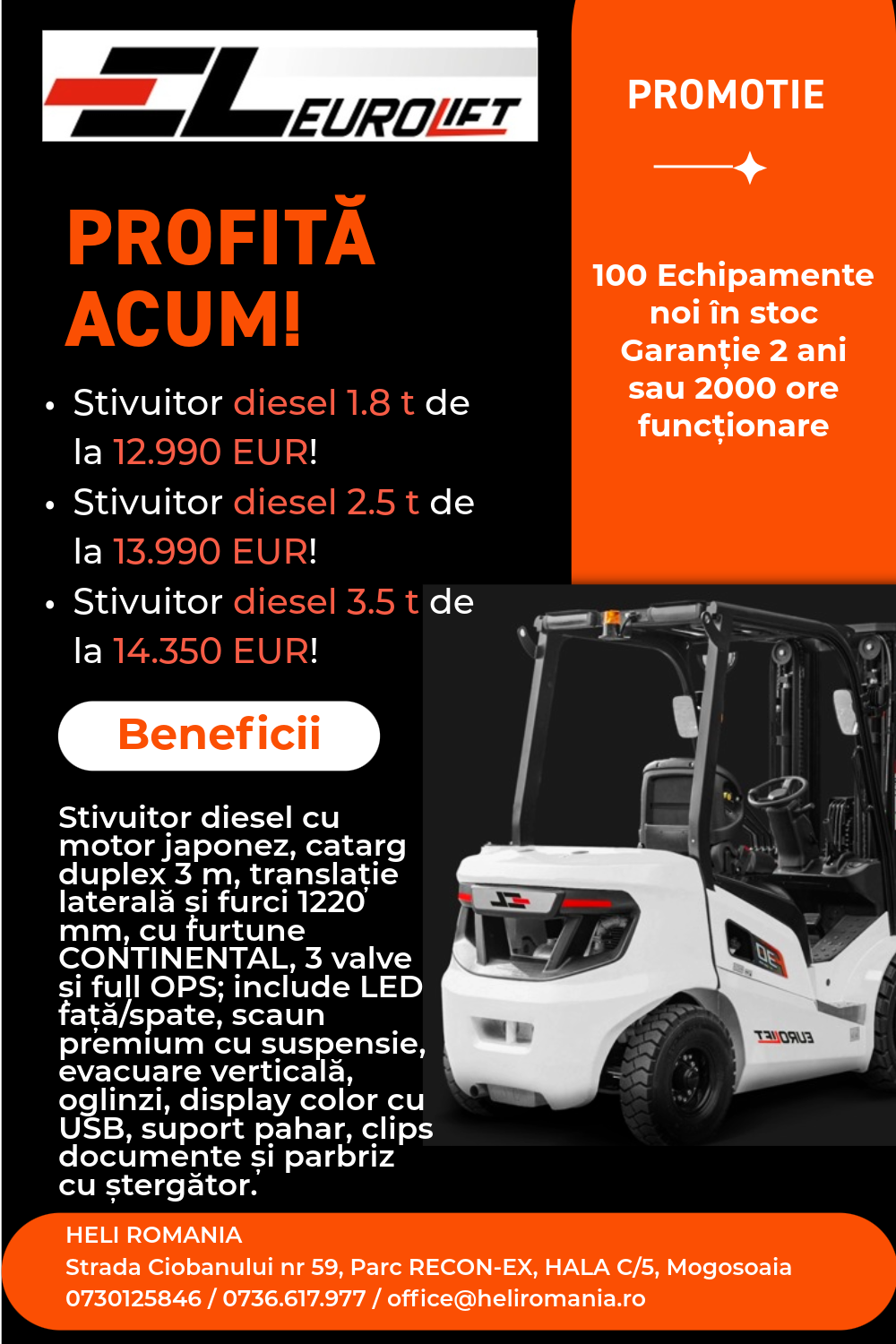 Stivuitoare diesel cu capacitate 1.8t, 2.5t, 3.5t la un pret special!