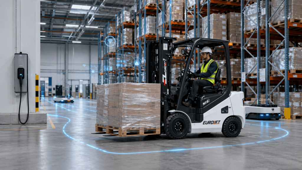 O altă forță care modelează direcția industriei este cererea tot mai mare pentru reducerea consumului de energie și a emisiilor. Stivuitoarele electrice se impun în fața celor pe combustibil, iar integrarea cu sisteme inteligente de management al flotei duce la un control mai eficient al resurselor. Rezultatul este un lanț logistic mai previzibil, mai sigur și mai sustenabil.Automatizarea inteligentă: dincolo de controlul uman